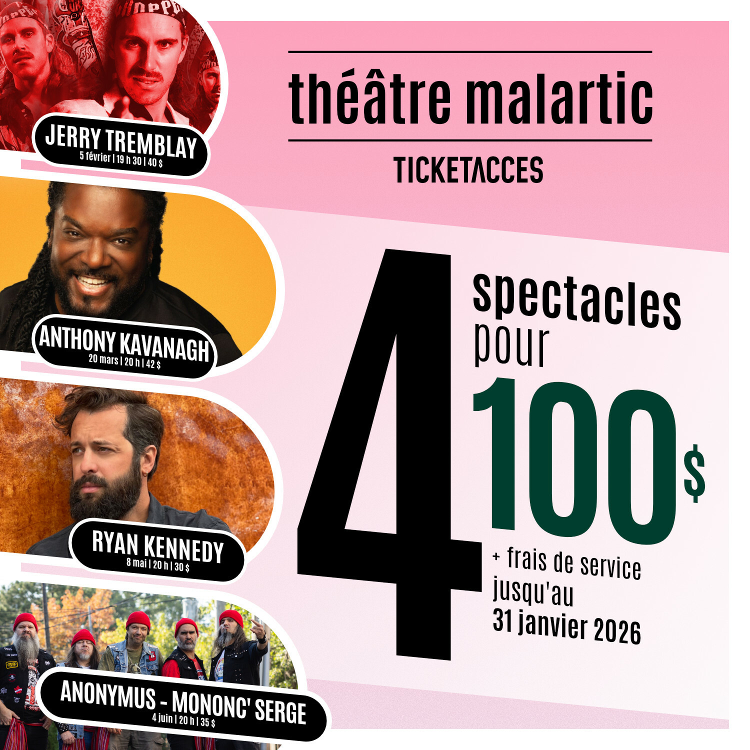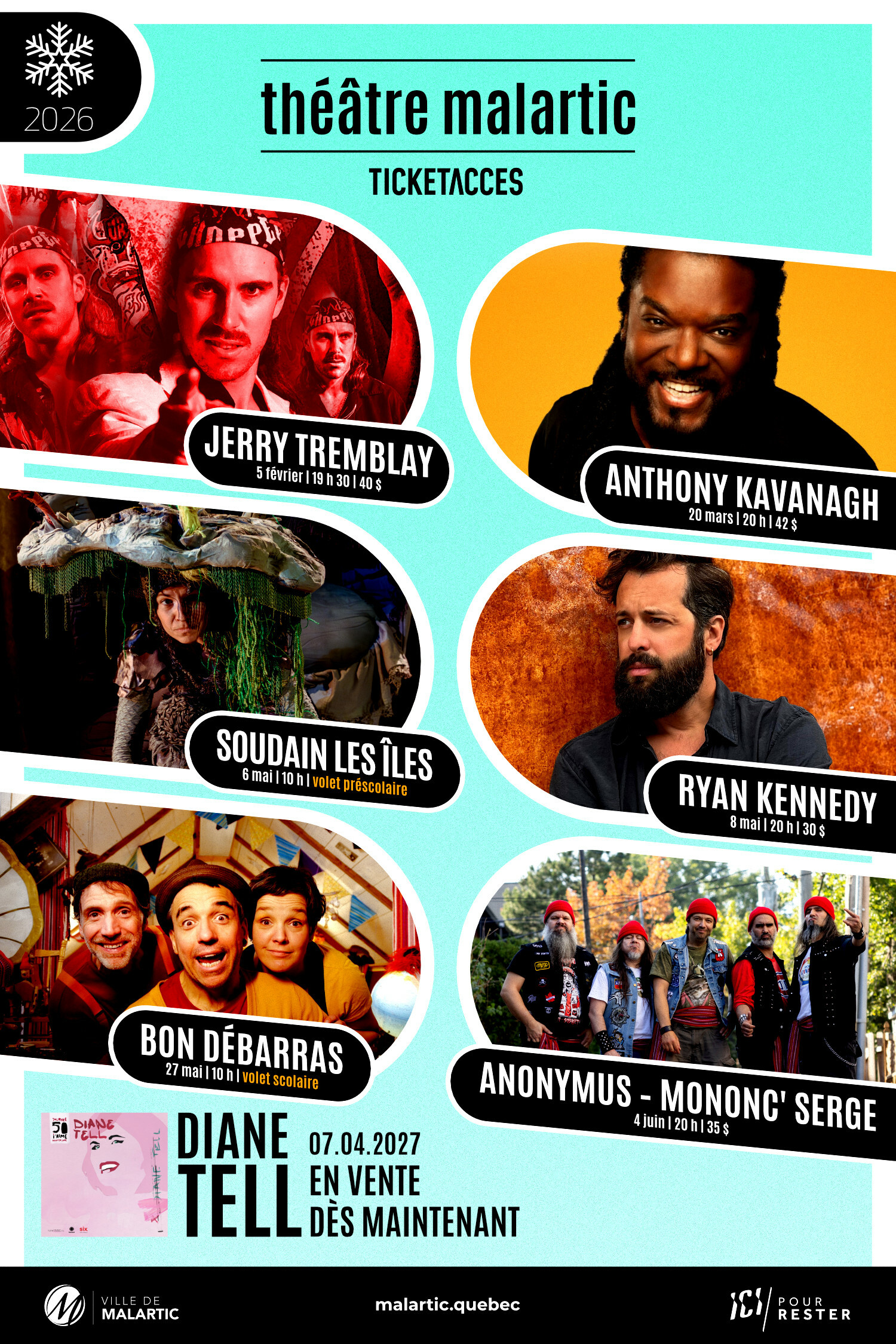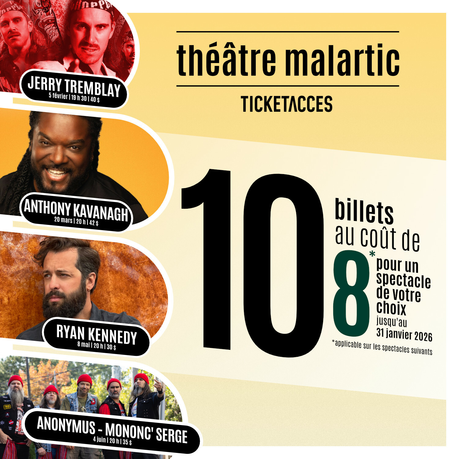 La Ville de Malartic est heureuse de dévoiler les spectacles qui animeront les prochains mois au Théâtre Malartic :