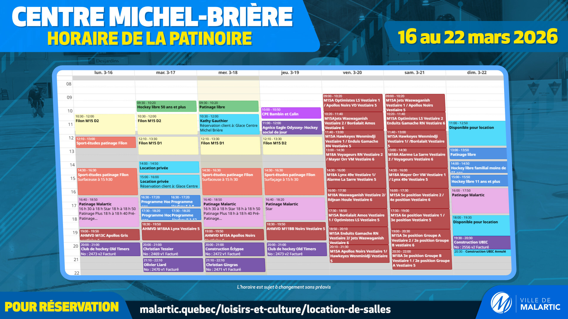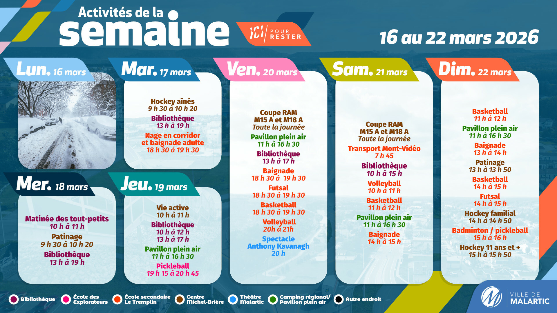 Activités de la semaine | 16 au 22 mars