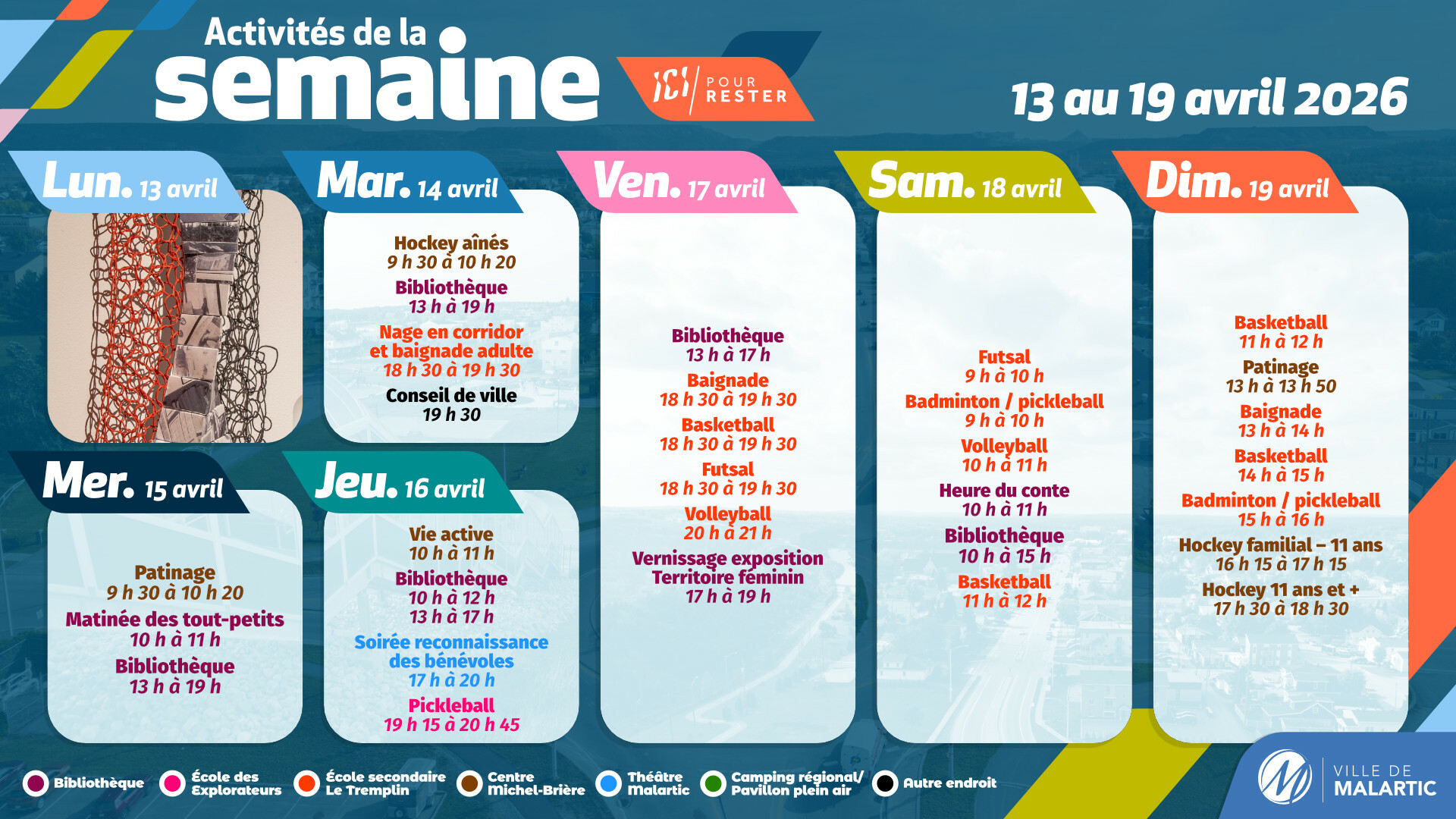 Activités de la semaine du 13 au 19 avril 2026