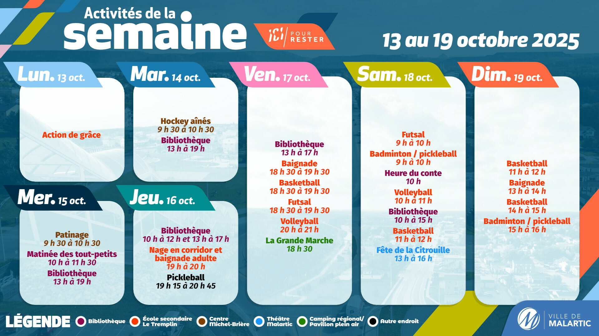 Nouvelles / Activités de la semaine du 13 au 19 octobre 2025