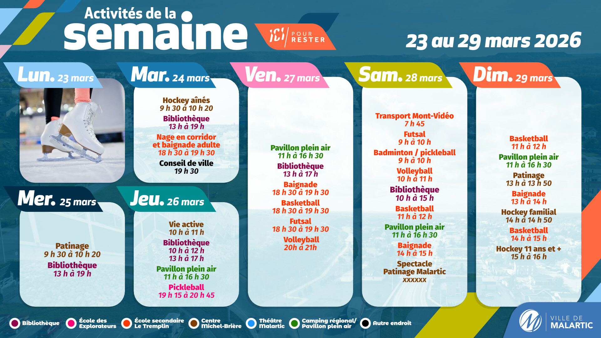 Activités de la semaine du 23 au 29 mars