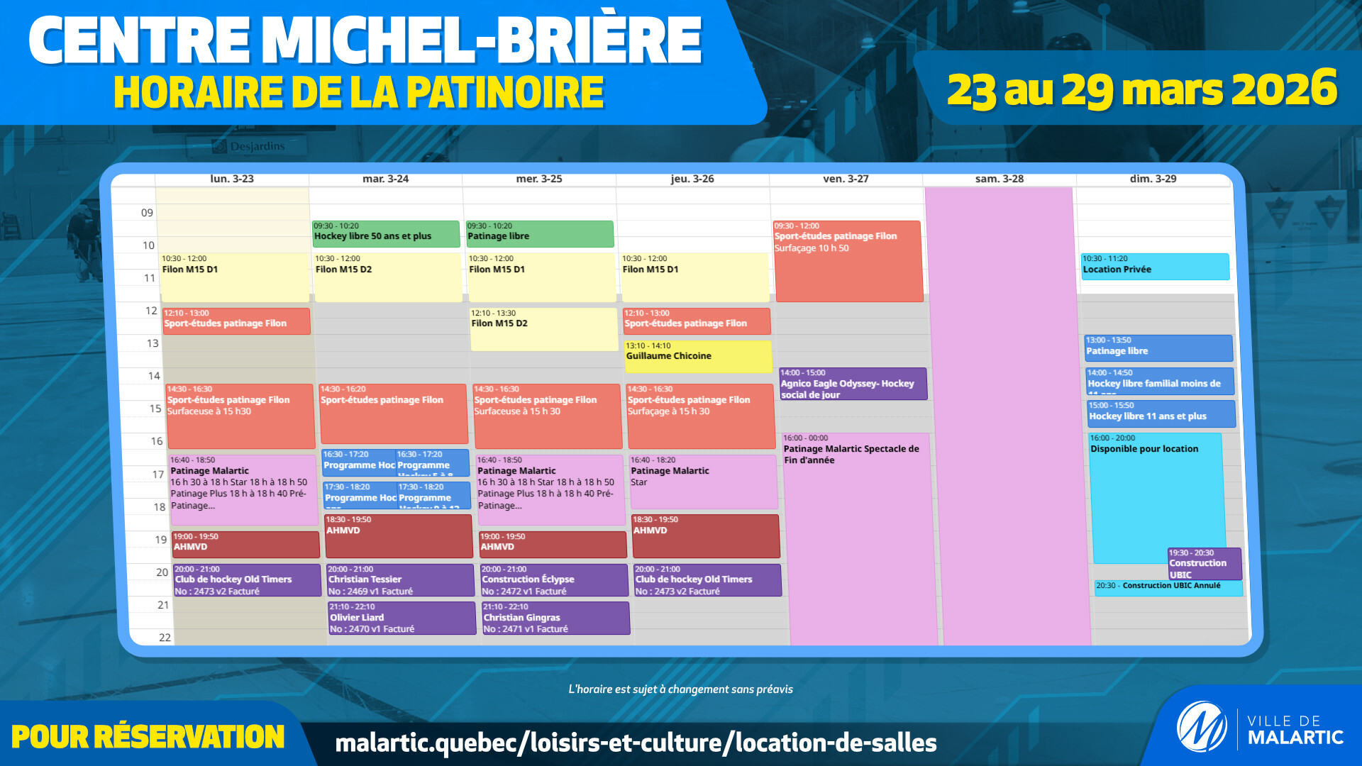 Horaire des activités