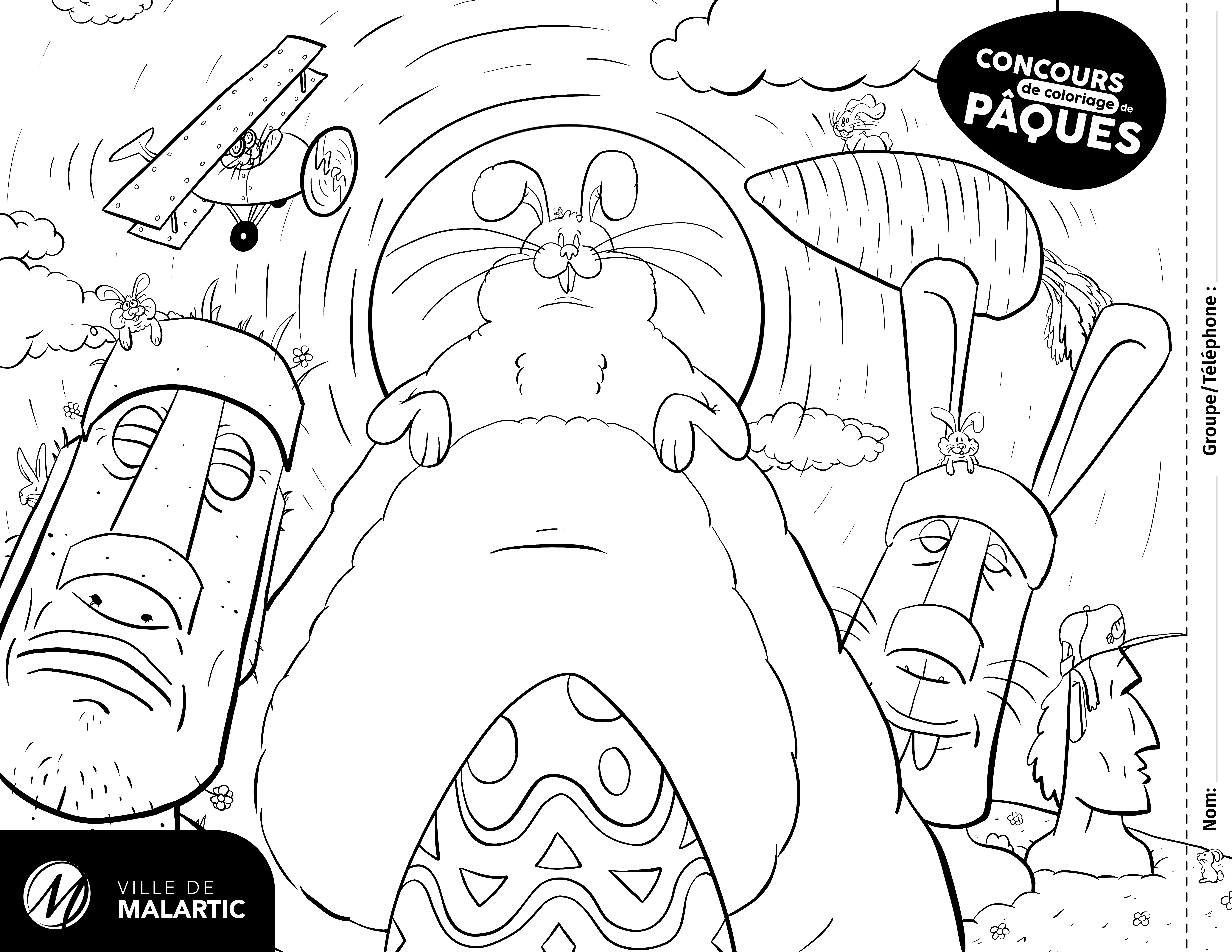 Un lapin géant a fait son apparition à Malartic! Venez célébrer Pâques en participant à notre concours de coloriage. Laissez aller votre créativité et courez la chance de remporter un délicieux chocolat de Pâques! 🍫