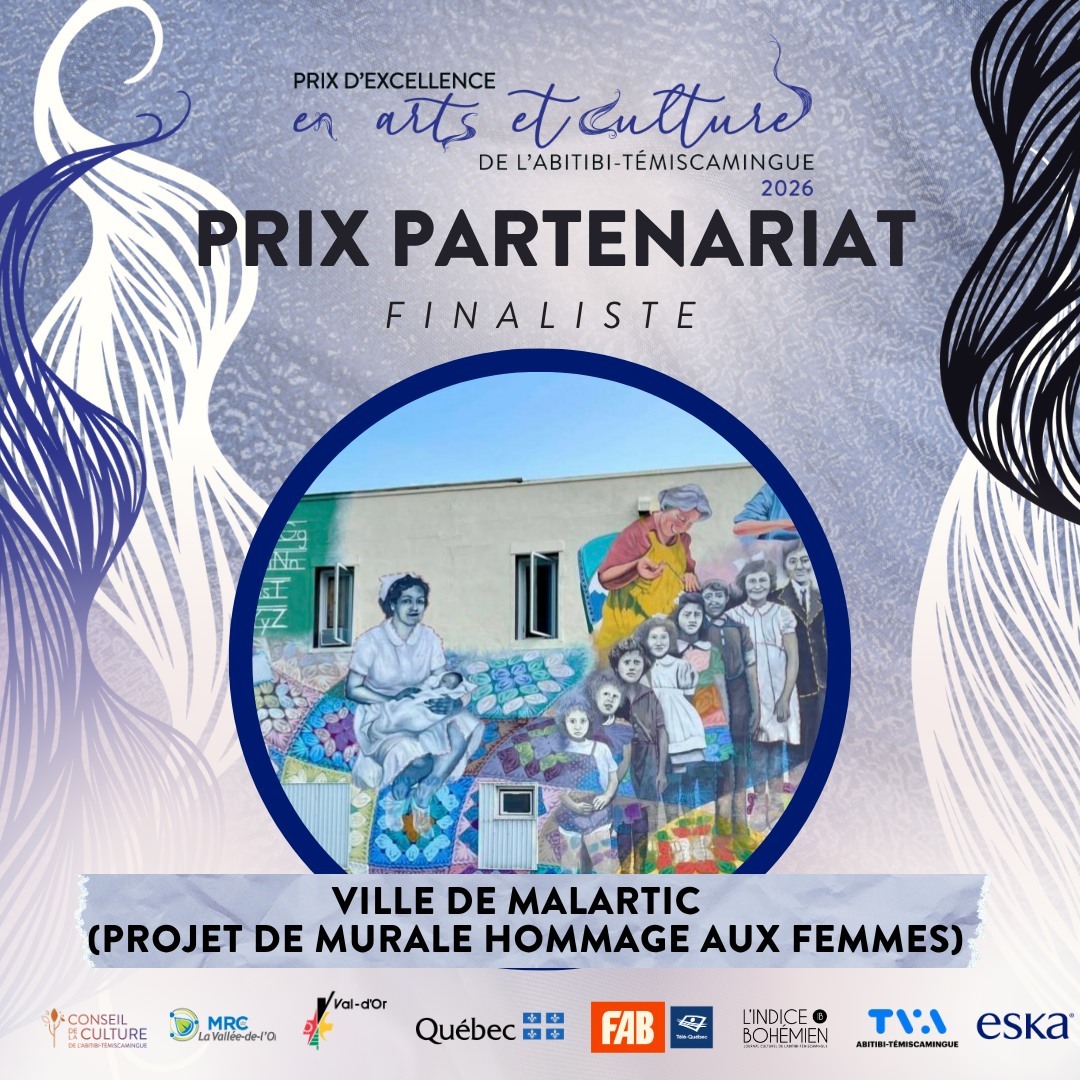 La Ville de Malartic souhaite le meilleur succès aux finalistes des différentes catégories mises à l’honneur. Une mention toute particulière est adressée à la municipalité de Moffet, finaliste également du Prix partenariat, ainsi qu’à Mme Chantal Bourgeois pour son engagement remarquable envers le développement culturel de notre communauté.