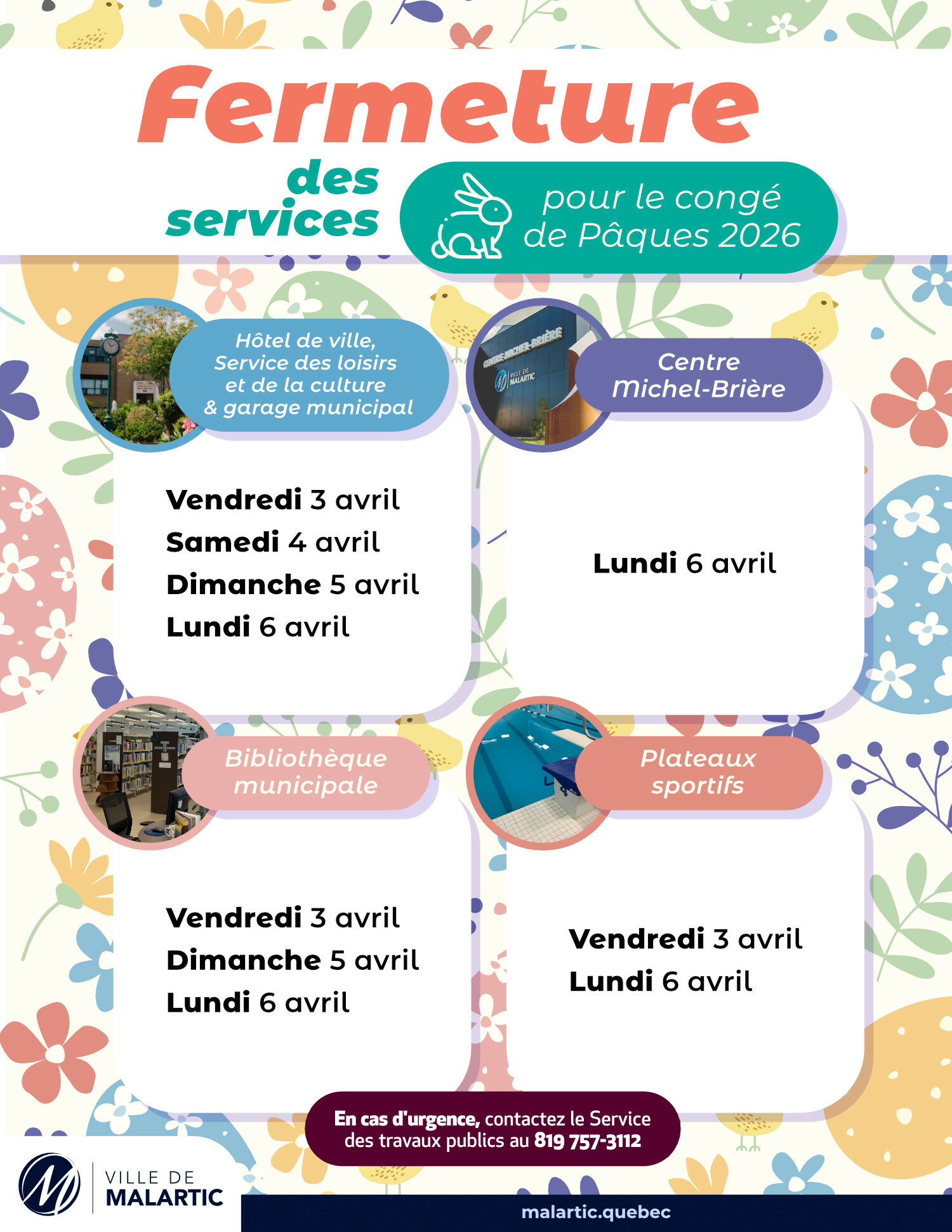 Fermeture des services municipaux | Congé de Pâques 2026