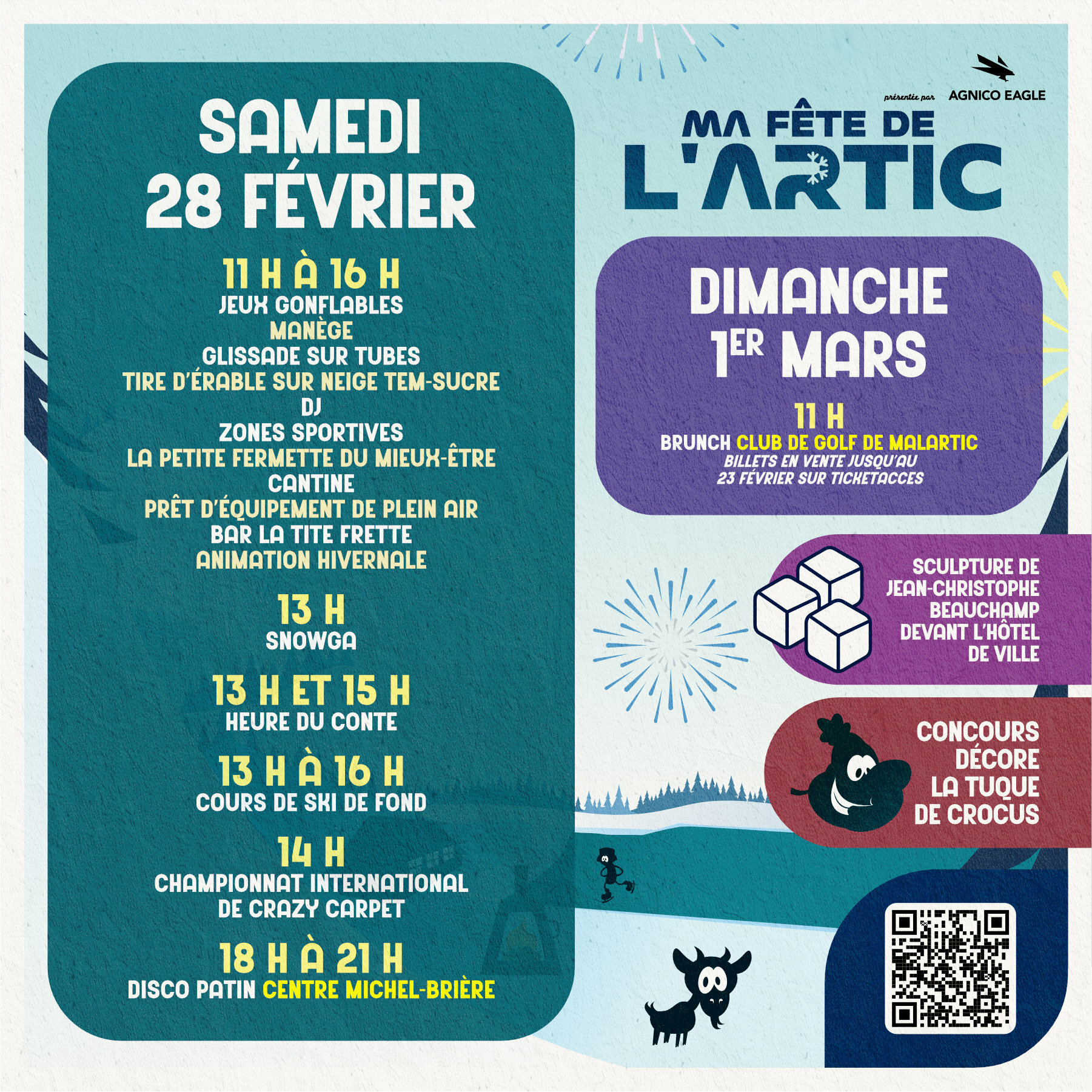 La Ville de Malartic est fière de présenter la 15e édition de Ma Fête de l’Artic, un événement hivernal rassembleur qui célèbre l’hiver, la famille et le plaisir en plein air. Pendant trois jours, la population est invitée à profiter d’une programmation variée alliant activités sportives, animations, spectacles et traditions hivernales.