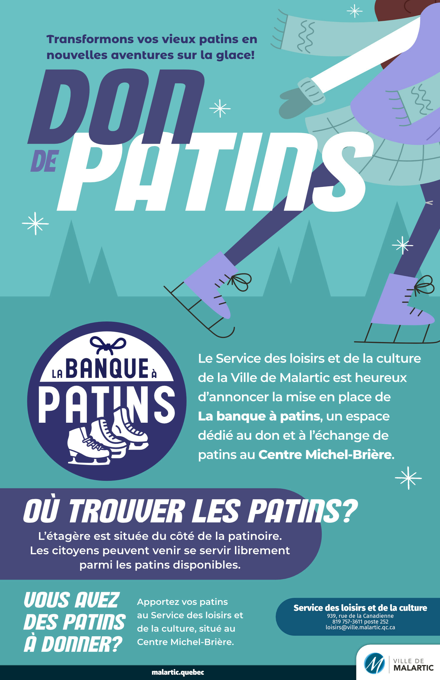 Le Service des loisirs et de la culture de la Ville de Malartic lance la Banque à patins, un espace de don et d’échange de patins aménagé au Centre Michel-Brière.